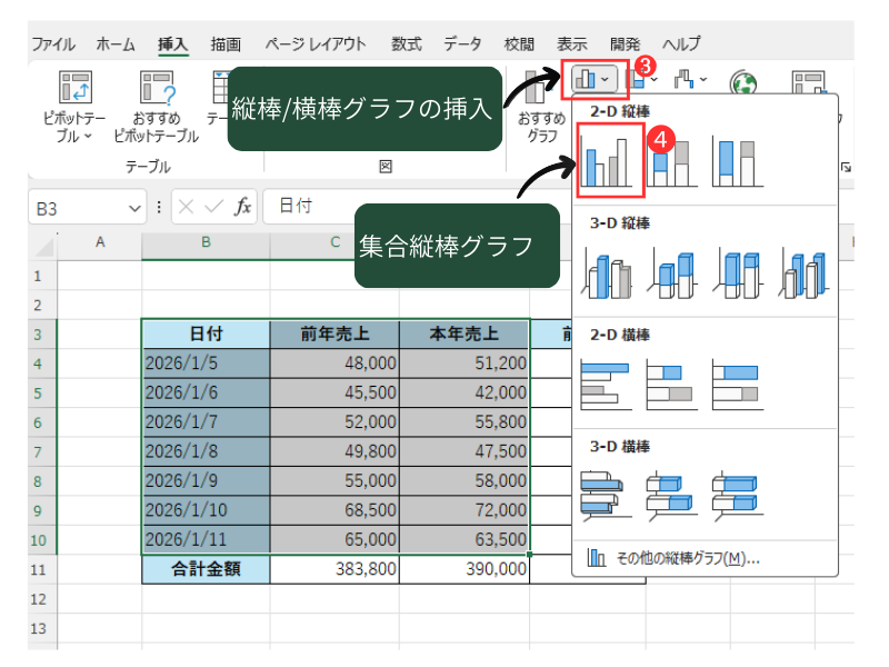 ❹ 「集合縦棒」を選択